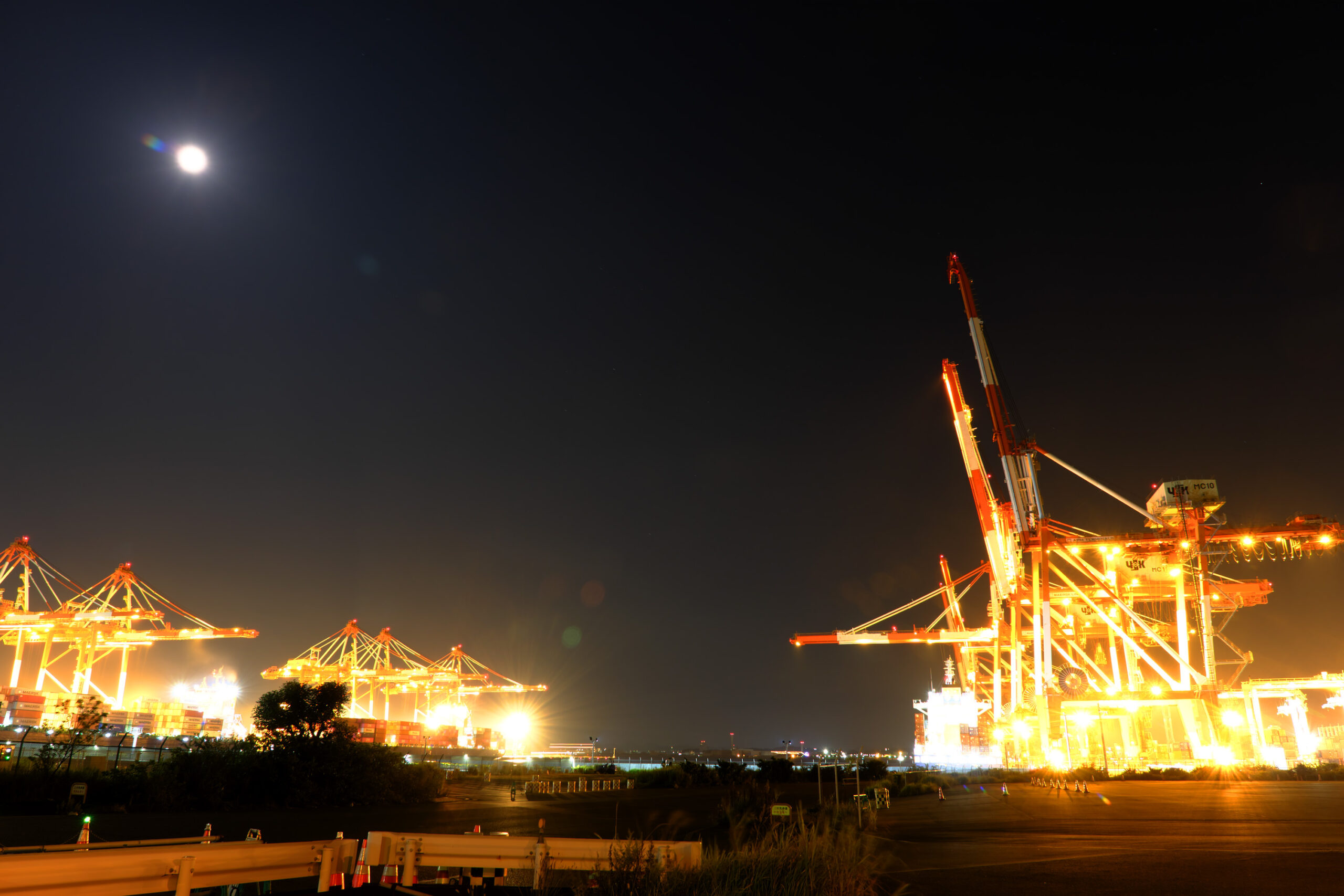 南本牧埠頭は多くのガントリークレーンが立ち並び工場夜景好きな方には人気のスポットです。夜間も大型車が多く通行し、立ち入り禁止エリアもあるので十分注意が必要です。