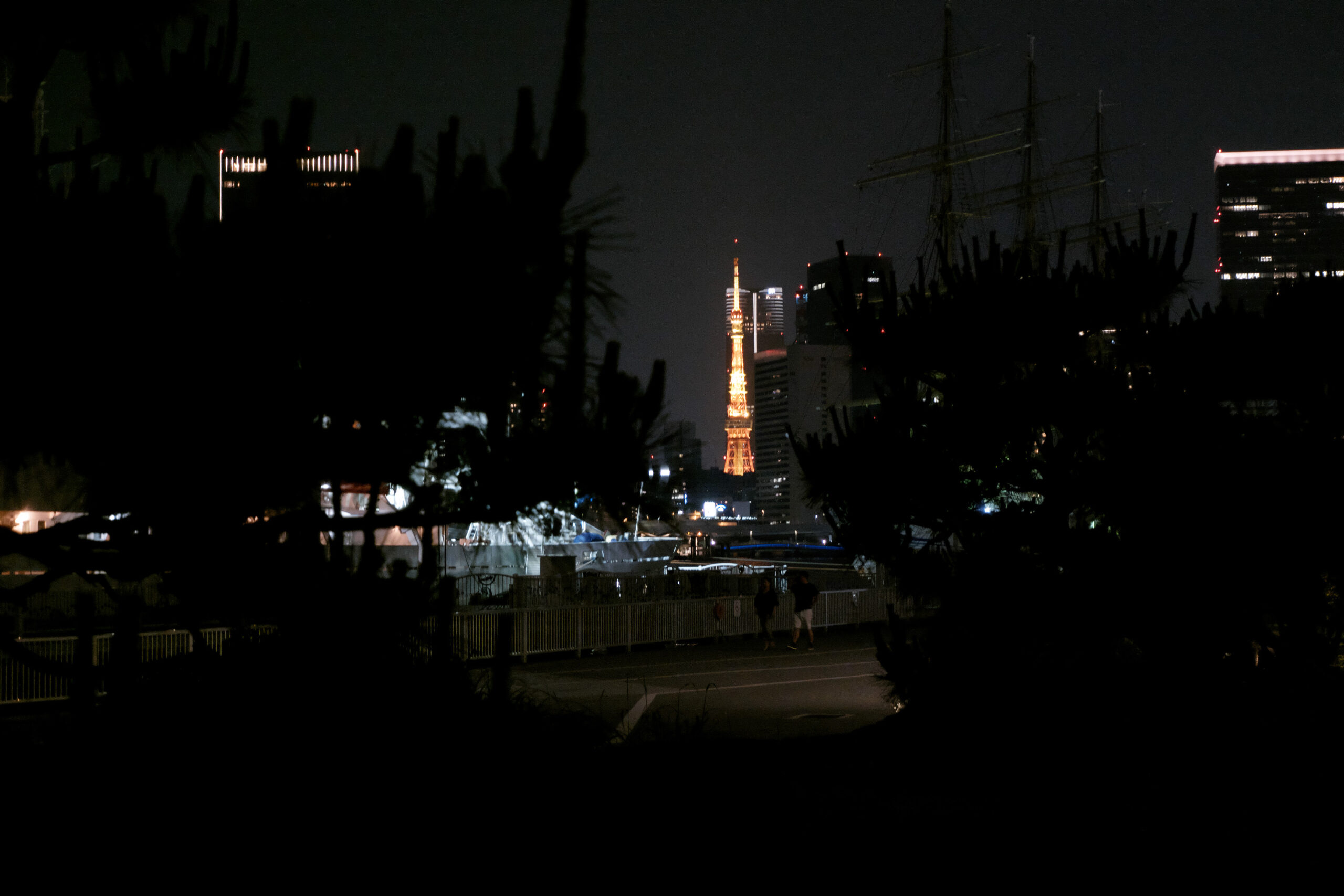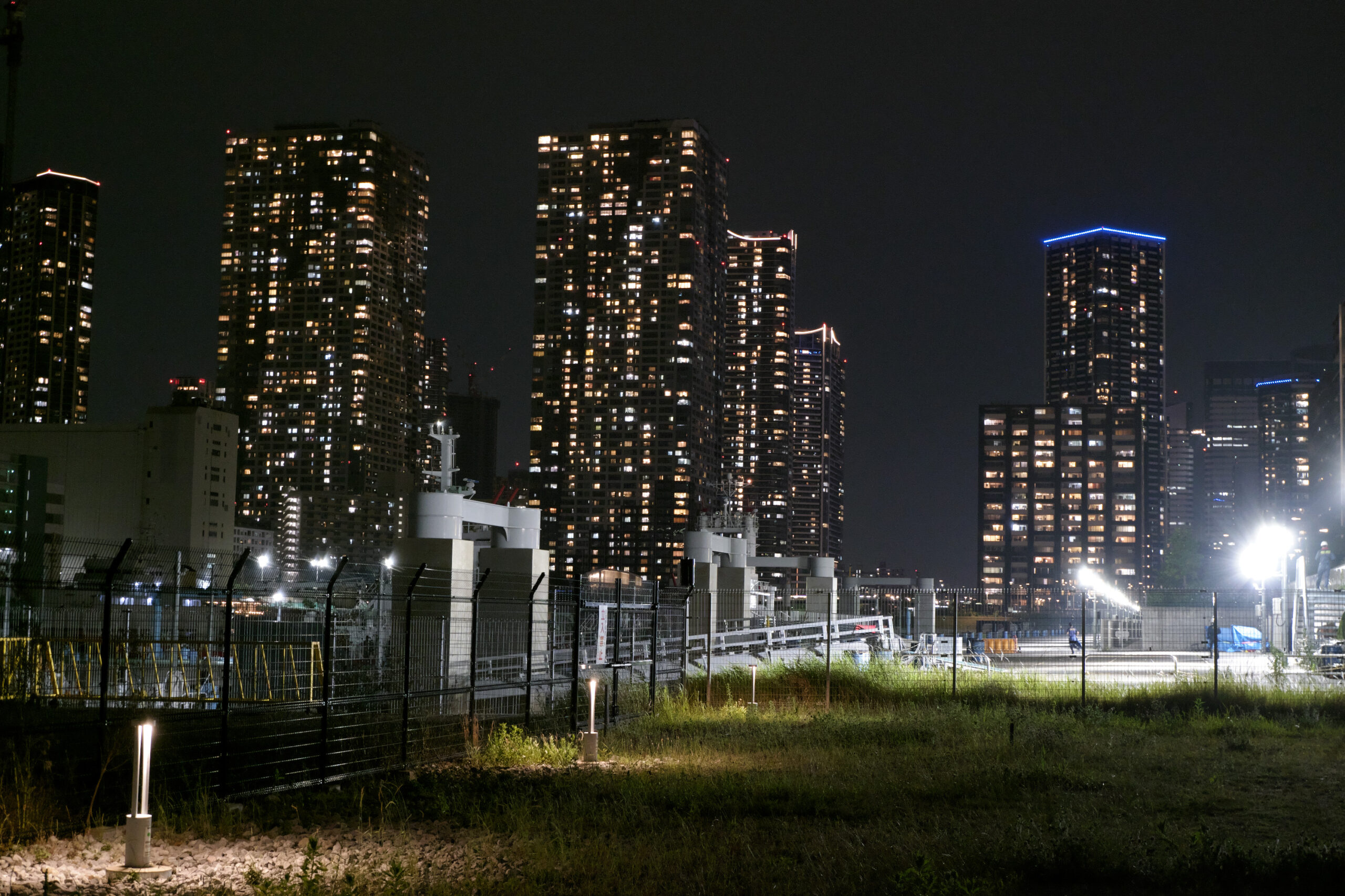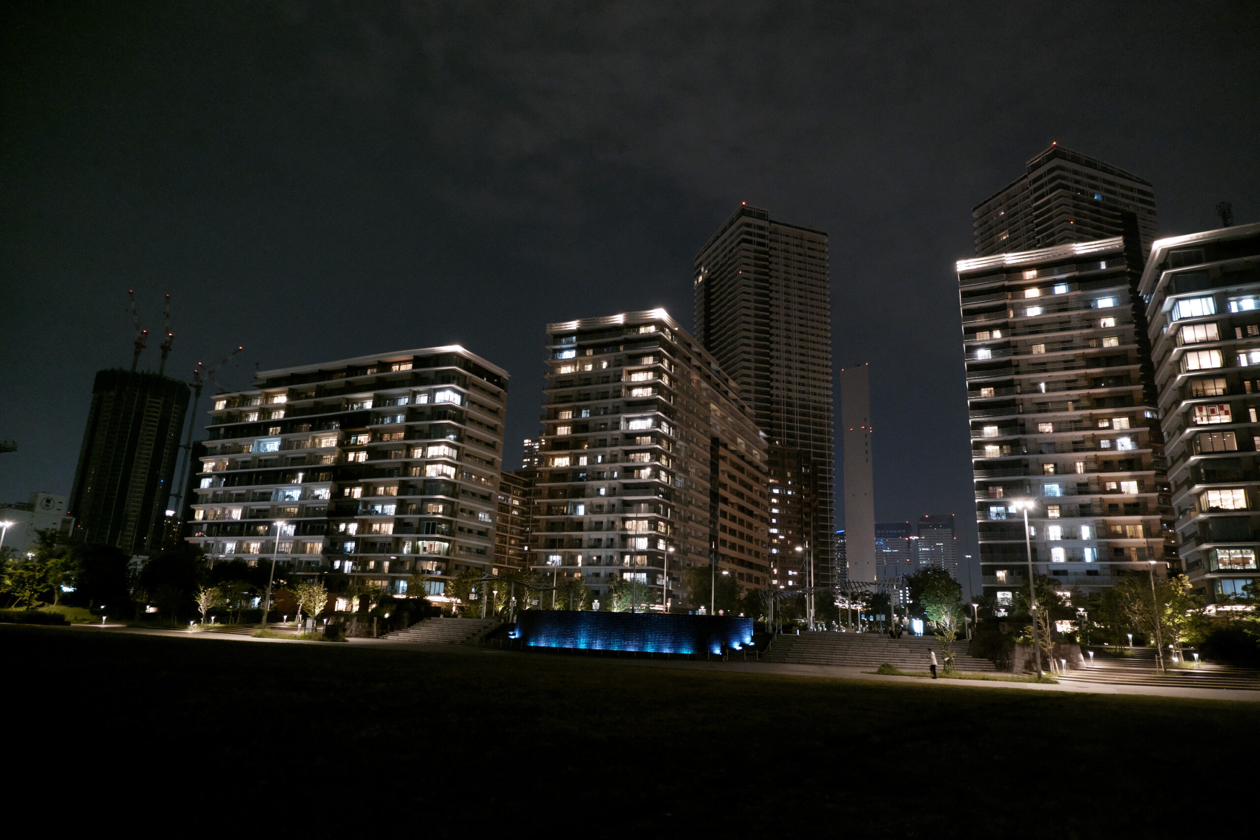 かつては不当として、そしてオリンピック選手村としてにぎわった晴海、南端にあった埠頭は公園になりました。周辺には高層マンションが立ち並び夜間も多くの人がくつろいでいます。