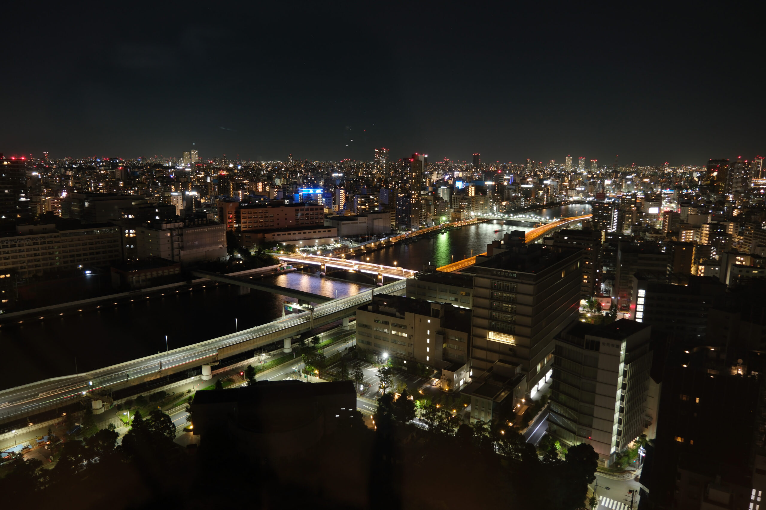 APAホテル両国 2025.12.22 両国国技館の裏手にあるこのホテルからは東京の下町の夜景を一望できます。宿泊される際は高層階への宿泊をお勧めします。下の写真は29階から北西側への眺望です。また、最上階にはレストランがありこちらの利用でも夜景を楽しめます。